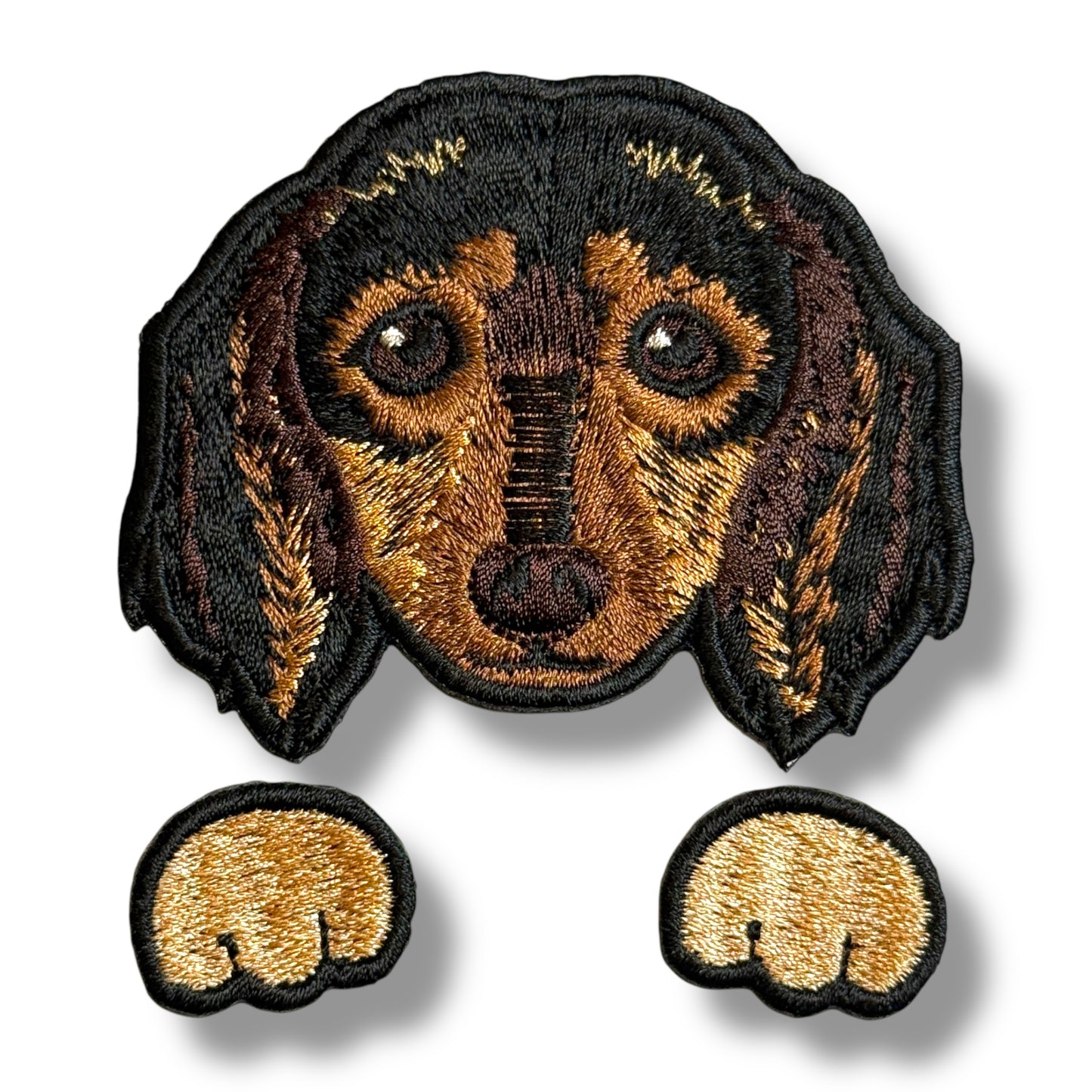 ワッペンの裏に厚紙とフェルトを貼り、合皮リボンでキーホルダー金具をはさみ、ミシンで外側を縫います。